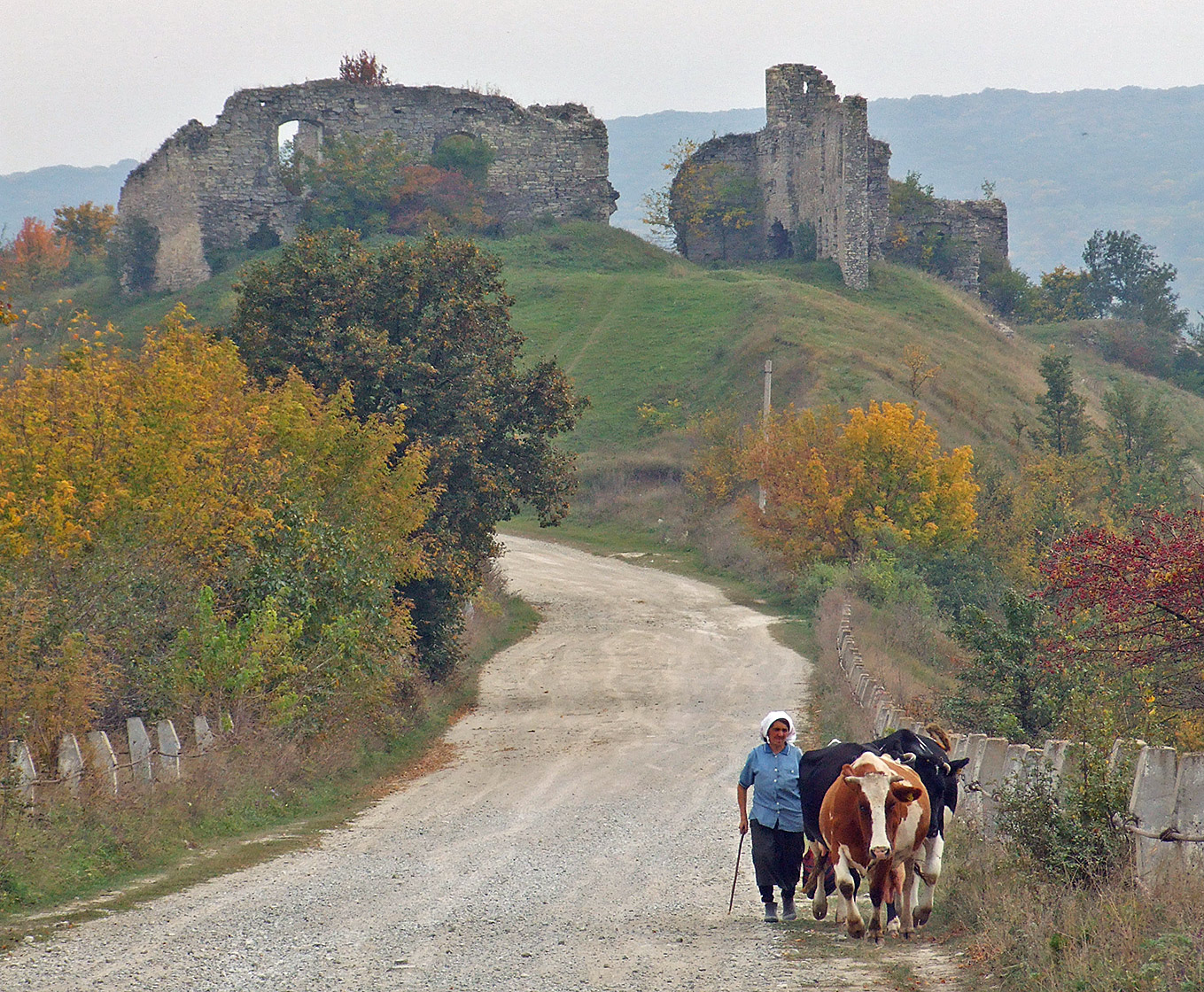 Далі не забудьте пристебнути ремені безпеки, бо до хороших доріг ще далеко. І це стосується обох берегів Збруча. Через Фащівку (мурована церква Різдва, 1867) і Турівку вибираємося на Красне, на трасу. Праворуч тягнеться зелене пасмо Медозборів — скам’янілий кораловий риф Сарматського моря, головні гори Поділля.