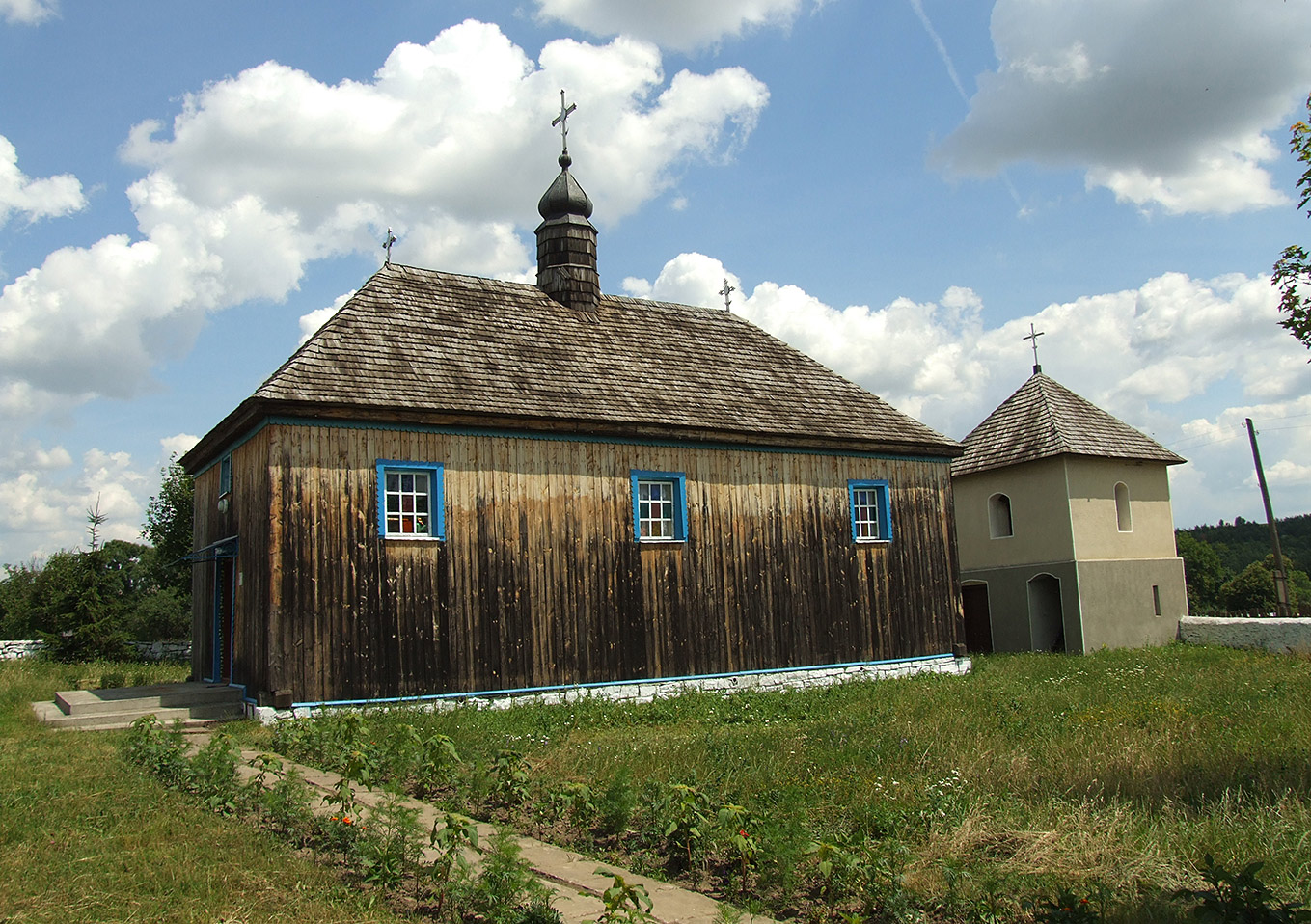 У самому центрі при дорозі — дерев’яна церква Івана Богослова (1695) під ґонтом. Святиня — останній форпост подільського стилю в дерев’яній архітектурі. Північніше вже починається Волинь. Нечастий для області приклад храму без «поліпшень» з бляхи чи сайдингу. На новій дзвіниці золотом виблискує ім’я міцного господарника Крижовачука — дав гроші на будівництво. Неоковирна нова капличка в ядучих штучних квітах поруч дисгармоніює з старою спорудою.