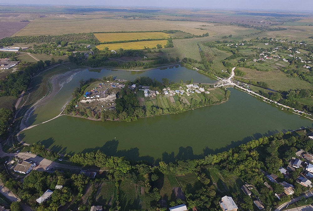 А далі — великий півень на знакові «ТЕРНОПІЛЬСЬКА ОБЛАСТЬ». Бо ж всі місцеві знають: у Окопах півень на три боки кряче. Колись тут сходилися СРСР, Польща та Румунія, а зараз це кордон трьох українських областей — і останні метри великої за своїм значенням ріки.