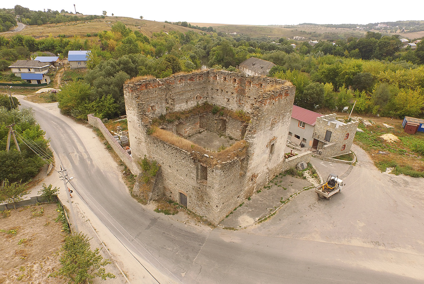 А от наступні села вже цікавіші. Ожигівці і Токи колись були одним містечком. Для історичних джерел твердиня на півострові посеред ставу відома як замок в Ожигівцях. А для нас фортифікації розташовані вже у Токах. Ну як фортифікації — більш-менш збереглася південна двоярусна вежа та фрагмент мурів.